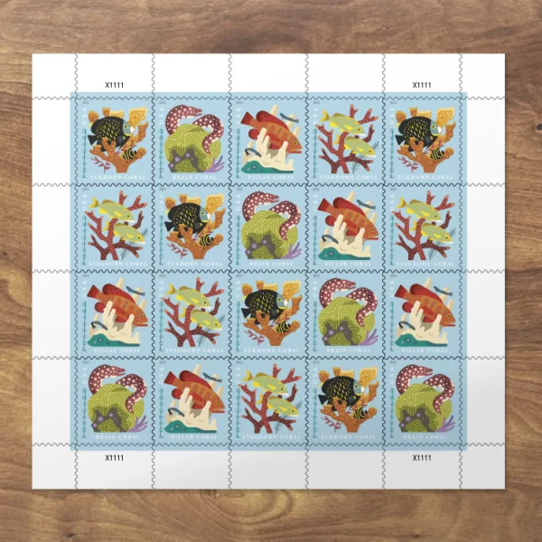 Celebrate the beauty and wonder of coral reefs with four new postcard Stamps from the U.S. Postal Service?. Featuring highly stylized digital portraits, the stamp art depicts four types of stony corals with associated reef fish.