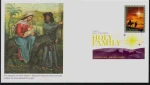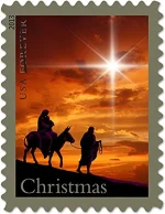 Art director William Gicker, designer Greg Breeding, and artist Nancy Stahl created the stamp’s artwork. It features Joseph leading a donkey carrying Mary and baby Jesus under a shining star.