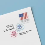 Crafted by artist Hong Li, the stamp showcases a graphic interpretation of Old Glory. Below the flag, the word “FREEDOM” stands out in an elegant gray font.