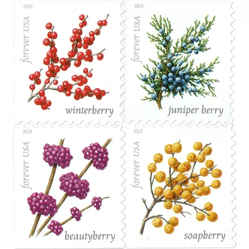 In 2019, the United States Postal Service honored four species of winter berries on postage Stamps:? winterberry, juniper, beautyberry, and soapberry.? The first three are popular winter food sources for many animals. ?This includes birds like woodpeckers, quail, robins, waxwings, and catbirds, which normally prefer insects.? When planting winter berries, it is important to identify the shrubs and trees native to your area and choose those.? This reduces the risk of non-native plants out-competing native species. ?It will also ensure your berries are equipped to handle your climate.