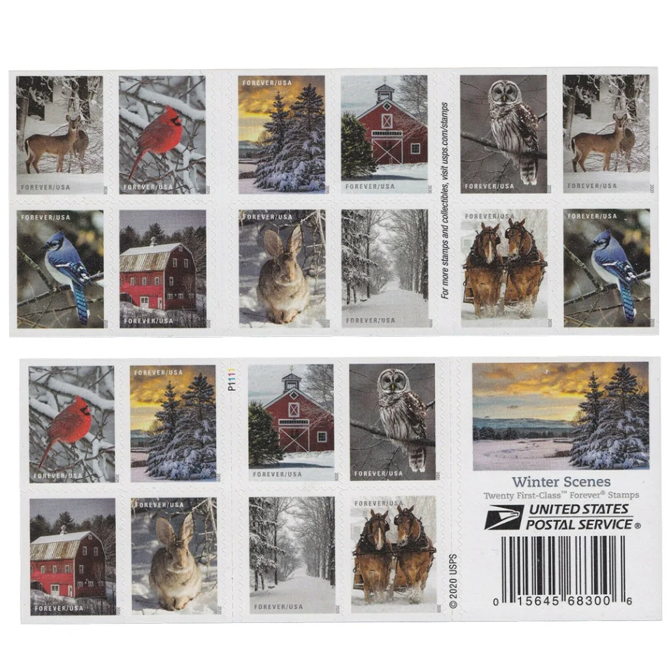 Winter Scenes celebrates the beauty and serenity of seasonal sights amid snowy landscapes. The ten different photographs featured in this booklet of 20 Stamps showcase the special allure of winter with iconic scenes from the northern part of the United States.